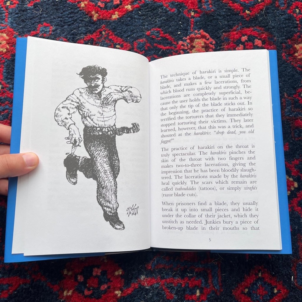 Thirty years later, Petropoulos published an article based on this material, which detailed the practices of self-harm amongst prisoners and urban working class men, dubbed “harakiri” in Greek underworld slang.
