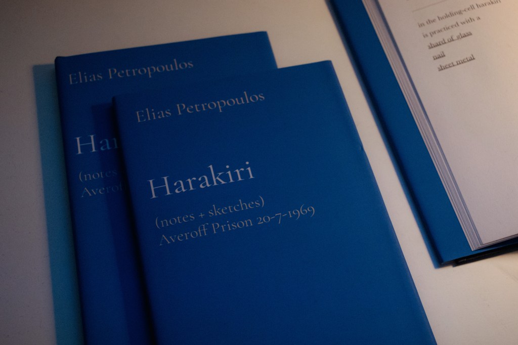“Harakiri” presents the notes and sketches made by Elias Petropoulos while he was incarcerated in Averoff prison in July 1969.