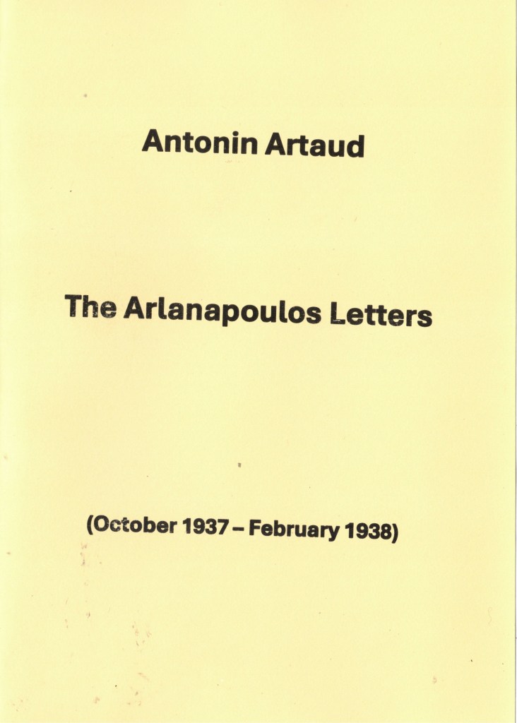 The topic of “greekness” in the life and work of Antonin Artaud has been largely unexplored. In these letters, written on Artaud’s return to France after his disastrous journey to Ireland, illuminate precisely the strains of hellenism in his lineage, writing and thinking. Artaud’s grandmothers were born in Smyrna, and his mother also spoke Greek, often calling her son “Nanaqui” (Νανάκι), a diminutive that Artaud sometimes used to sign his correspondence and writings. Scattered throughout the glossolalia of Artaud’s late period are words with Greek roots, and he even titled one of his drawings “coutí anatomy” from “κουτί” (box). The alter-ego of Antoneo Arlanapoulos was therefore only half-invented, and represents a psychic excavation of parts of himself at a point in his life that was marked by mental collapse.