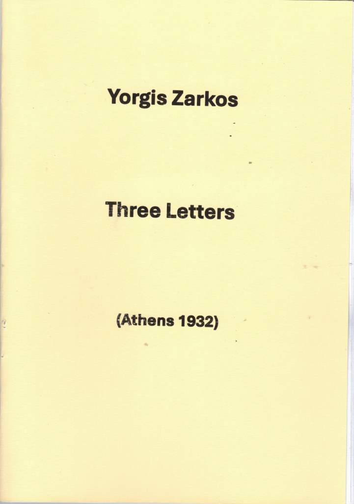 An English translation of left-wing writer Yorgis Zarkos’ caustic 1932 letters, recently discovered by Dimitris G. Yfantis.